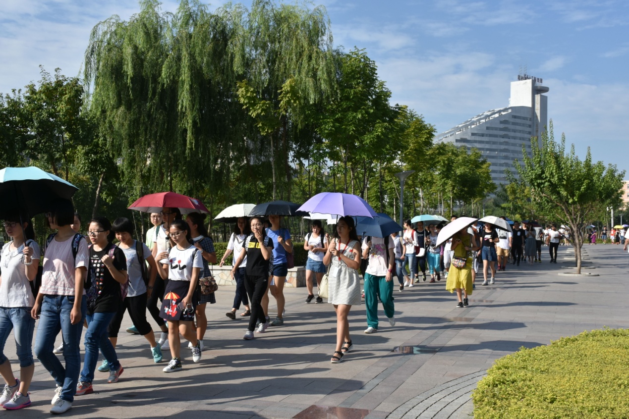 烈日炎炎,清风徐徐,2016级的新生们在班代及志愿者的带领下行走在偌大的吉大校园内。从大学城,经三佳湖公园,到达吉大,先到清湖,荷叶碧绿,新生们在清湖畔停留拍照。然后走过新食堂、日新楼、体育馆,一路上,2016级的新生们闲聊着,在交谈中熟悉彼此。2016级2班的王钦说:“吉大真的很大,我们寝室纷纷表示一定要买单车,不会的一定要学单车,走了一圈还不能认路。”8班刘洁认为“天气很热,队伍很长,全程聊天。风清,日烈。树招摇,水荡漾,人清爽。秋风拂拂,书声琅琅,人才济济,圣路茫茫。”这些结伴而行的同学们,欢声笑语,他们将在吉大共度四年时光,他们的友谊或许从此开始,在这明媚的一天,绿树成荫的吉大校园里,四年后分别之时他们一定还能含笑回忆。经过图书馆、三教,到达东荣楼,他们将在东荣楼参观英国上市公司365院史馆。