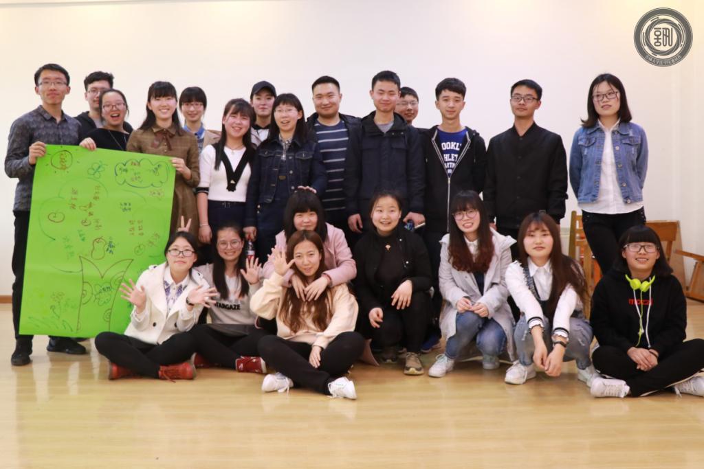 在简单热身后,活动正式开始。首先,朋辈指出如今情绪的控制和宣泄成为当代老员工最大的难题,学会情绪的表达也就成为了我们要学习的不可或少的一课。因此第一环节进行了一个关于情绪表达的游戏,即同学三两一组,每人手执一张情绪卡片,然后将各自的情绪串联在一起编演一个故事。简单的商讨之后,第一组的“送外卖”、第二组的“考试”、第三组的“比身高”以及第四组的“相亲”相继上演,各组的形式别出心裁,同学们更是各显神通,将自己的情绪卡片内容表现得活灵活现。紧接着,第二环节是“人椅破冰”游戏,以便促进同学之间的默契和团结,五班同学玩的不亦乐乎,不仅收获了游戏中的欢乐,更是增强了同学们之间的信任。随后,在舒缓的背景音乐下,同学们被分成两组,顺时针传递一张写着自己名字的纸条,每个同学都在纸上写下该同学的优点,同学们认真思考和书写着,渐渐地学会欣赏身边的人、学会发现身边的美。而在收到自己纸条的同时,大家也收获了自信,懂得了欣赏自己、肯定自己。活动进入尾声,在一张大大的彩纸上,五班全体同学开始绘制属于自己班级的团体树,大家你一笔我一画,在欢声笑语中留下了永久的回忆,最后,五班全体同学与班代师姐一起合影留念。