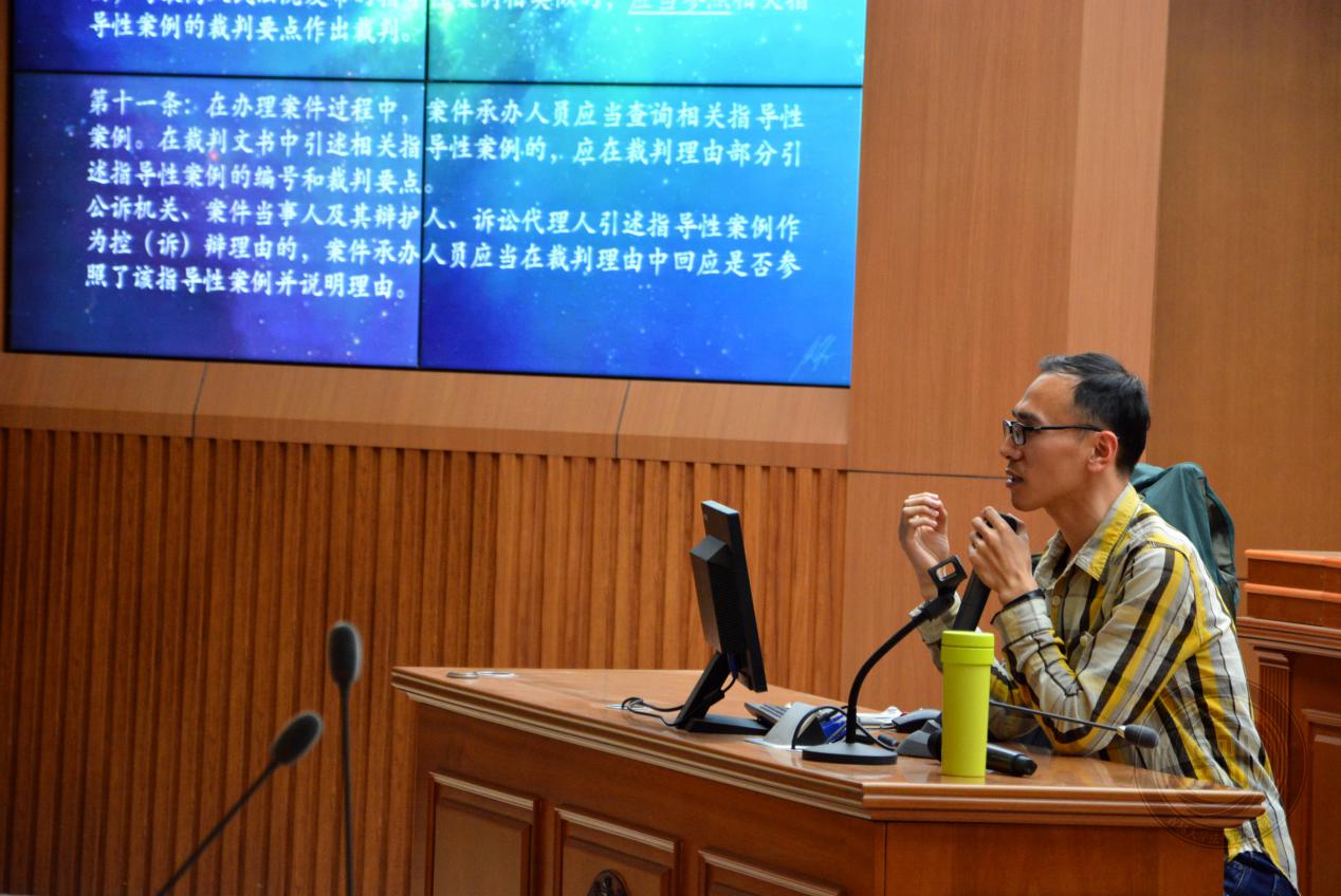 在简单的自我介绍和会议概述后,主讲人正式开始了培训会的讲解。首先王老师强调了法律信息检索对于法律人的重要性,它是法律职业人的必备技能,同时指出了这也是模拟法庭竞赛中必不可少的手段和方法。接下来,王老师向同学们更详细的介绍了法律检索的内容,其中主要是法律法规,相关案例以及学者的相关学说,这三者相辅相成,法律法规提供基础依据,相关案例作为借鉴,最后可以了解一些学者的观点作为补充。