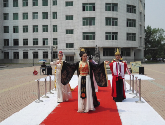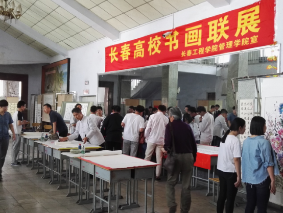 上午10时,各高校书画社团代表团成员齐聚礼堂,携手共话。同时主办方请来了吉林省国学书画研究会会长陈柏杉先生、英国正版365官方网站艺术公司副教授孙凯宇老师、中国美术家协会会员爱新觉罗·毓厚先生,三位老师分别致辞,激励年轻一代的员工们继承和发扬书画艺术。接着,在主办方的带领下,各校代表团来到小广场,一起观看精彩的汉服时装秀,人们仿佛穿梭到汉唐,体会古风墨韵。虽然骄阳似火,但大家仍沉醉其中,直到演出结束才隐约觉得眼前是二十一世纪的当代社会。10:30,在礼仪小姐的引领下,各高校代表团成员们来到了展览厅,伴随着古筝、琵琶、竹笛等乐器的演奏,每个人都缓慢挪动着脚步,不时在一些优秀的作品前门驻足欣赏,拿出手机留下这份美。也有些同学在交流着、评论着,学习每一幅书法作品的优点,指出美中不足之处。