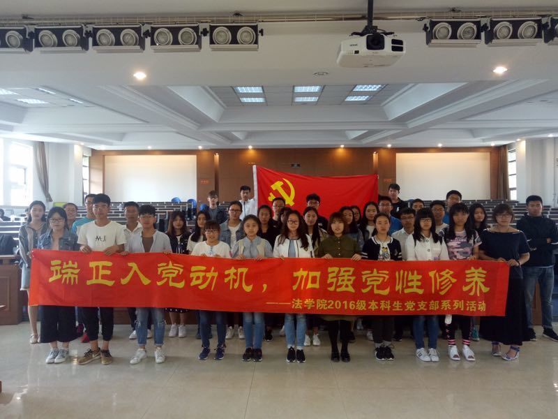 观影结束后,那日格乐、师曼毓、邬童三位同学和大家分享了自己的观影心得,他们表示,这样的纪录片给大家以震撼,使积极分子和有入党意向的同学端正了自己的入党动机,并树立了使命感和责任感,在今后的学习生活中,他们会如革命先辈一般为了崇高的信仰而不懈努力。观影心得交流在掌声中结束了,2016级全体党员和入党积极分子在鲜红的党旗前合影留念。