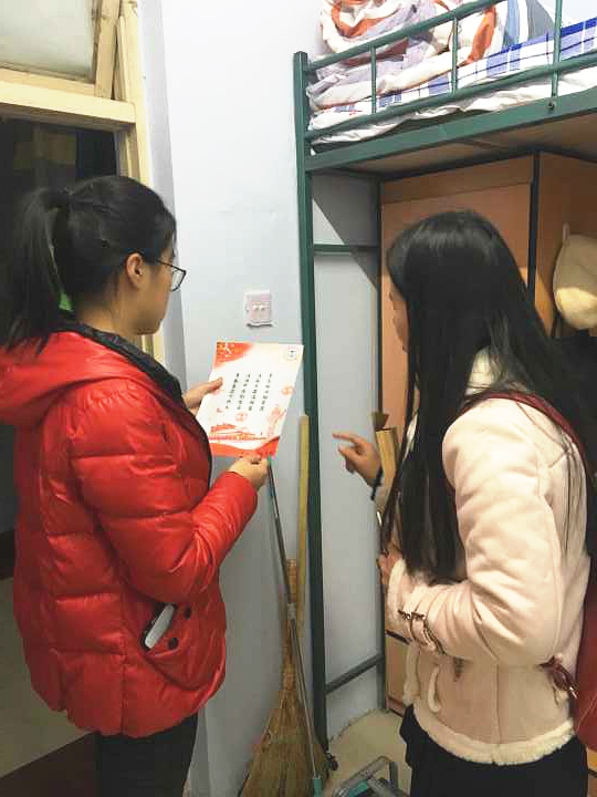 我们通过在校园内悬挂宣传法制思想的条幅、在各个公寓楼设置宣传展板和海报、建立“厚德普法宣传基地”,以及寝室电子屏等方式宣传法治理念,将公司范围内的普法宣传做到位;通过在各个寝室讲解分发宣传单和张贴海报让厚德普法活动覆盖到每一个同学。我们结合专业特点与活动主题,同时贯彻党的十九大所传达的精神,让全校同学都知法、守法、重法,实现了思政教育进寝室的目标。