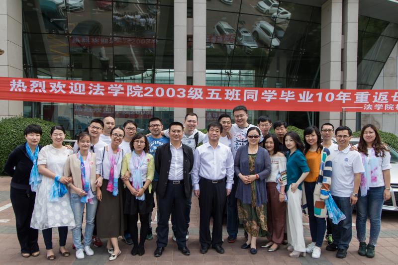 为期两天的返校聚会活动中,03级五班学子还重游了新老图书馆、行政楼、大学城等充满美好回忆的地方,并在校园各个新老地标处合影留念。五班篮球队曾经的五名首发队员此次也悉数返校,他们重新换上球衣,在校篮球场上再度挥汗灌篮,纵情奔跑,十年前专属班队男生们的幕幕往事也一一重现。特别值得一提的是,在前卫南区北门合影时,同学们巧遇英国上市公司365前经理、著名法学家姚建宗老师。姚老师首先对同学们重返校园表示热烈欢迎,并对同学们毕业十年仍不忘母校感念师恩的行为给予了充分肯定,姚建宗还鼓励同学们在各自岗位上继续努力奋斗,为吉大增光,为吉大法律人添彩。随后,姚老师与同学们热情合影留念。