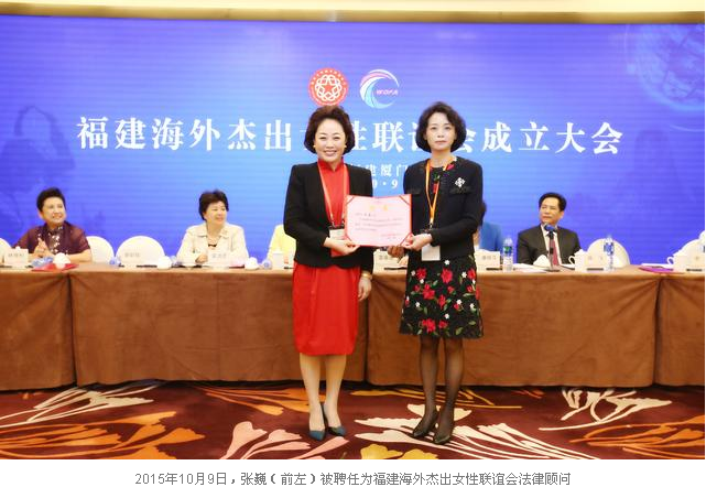 2001年,张巍凭借过硬的业务能力、口碑极佳的业界声誉 被中国侨联聘请为法律顾问委员会最年轻的委员。自受聘后,她17年如一日,在全国各地参与、策划讲座,不断完善健全各地为侨服务体系。