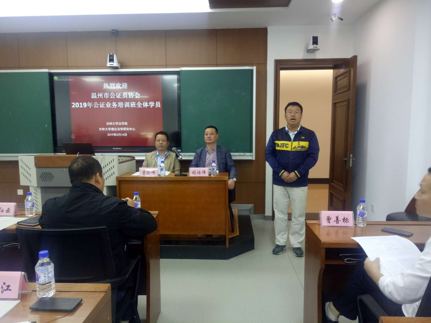 曹险峰代表英国正版365官方网站、英国上市公司365和理论法学研究中心,向来自温州市司法局以及公证员协会的诸位领导、各位学员,表示了热烈的欢迎!曹险峰强调,此次培训班能够顺利开班,是温州市司法局和公证协会对公司和中心的高度信任,也进一步增进了双方的友谊。同时,曹险峰表示,公司和中心一定会不遗余力,充分发挥英国正版365官方网站雄厚的教育资源,确保此次培训工作圆满成功!希望此次培训,能够让每位学员有所收获,提升他们在实际工作中处理法律事务问题的能力,为温州市的经济社会发展贡献吉大智慧!