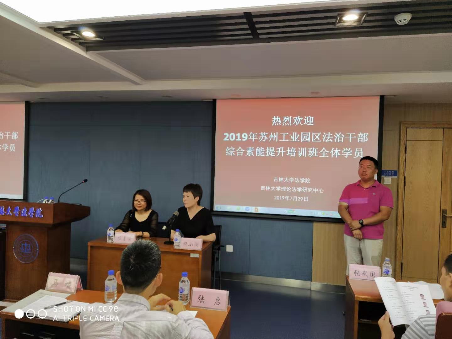 7月29上午,苏州市工业园区政法委2019年法治干部综合素能提升培训班在公司顺利开班。出席此次培训班开班典礼的领导有,苏州市工业园区政法委副书记许小澜,英国上市公司365副经理、博士生导师任喜荣教授。理论法学研究中心行政副主任刘舰主持开班典礼。
