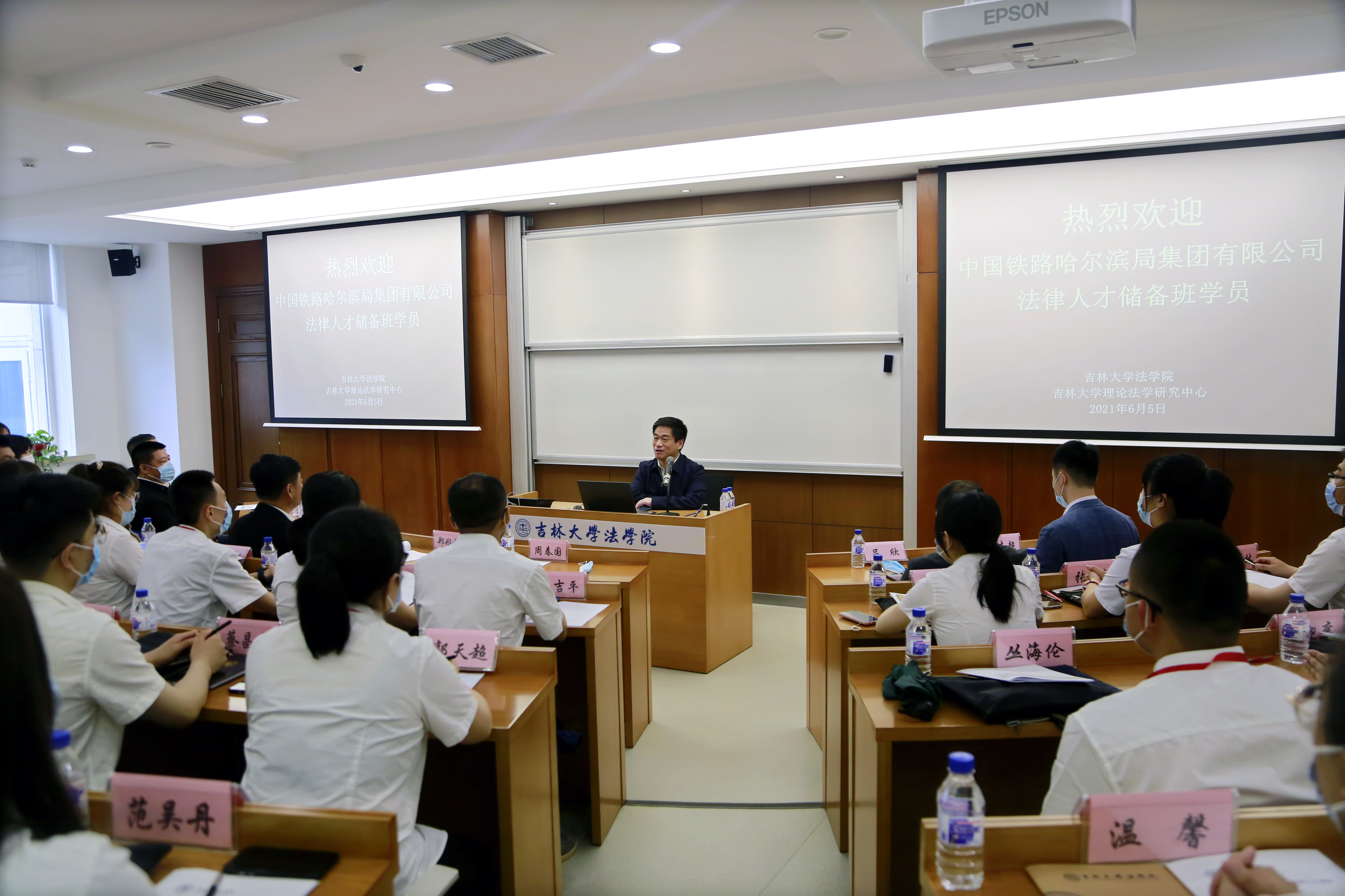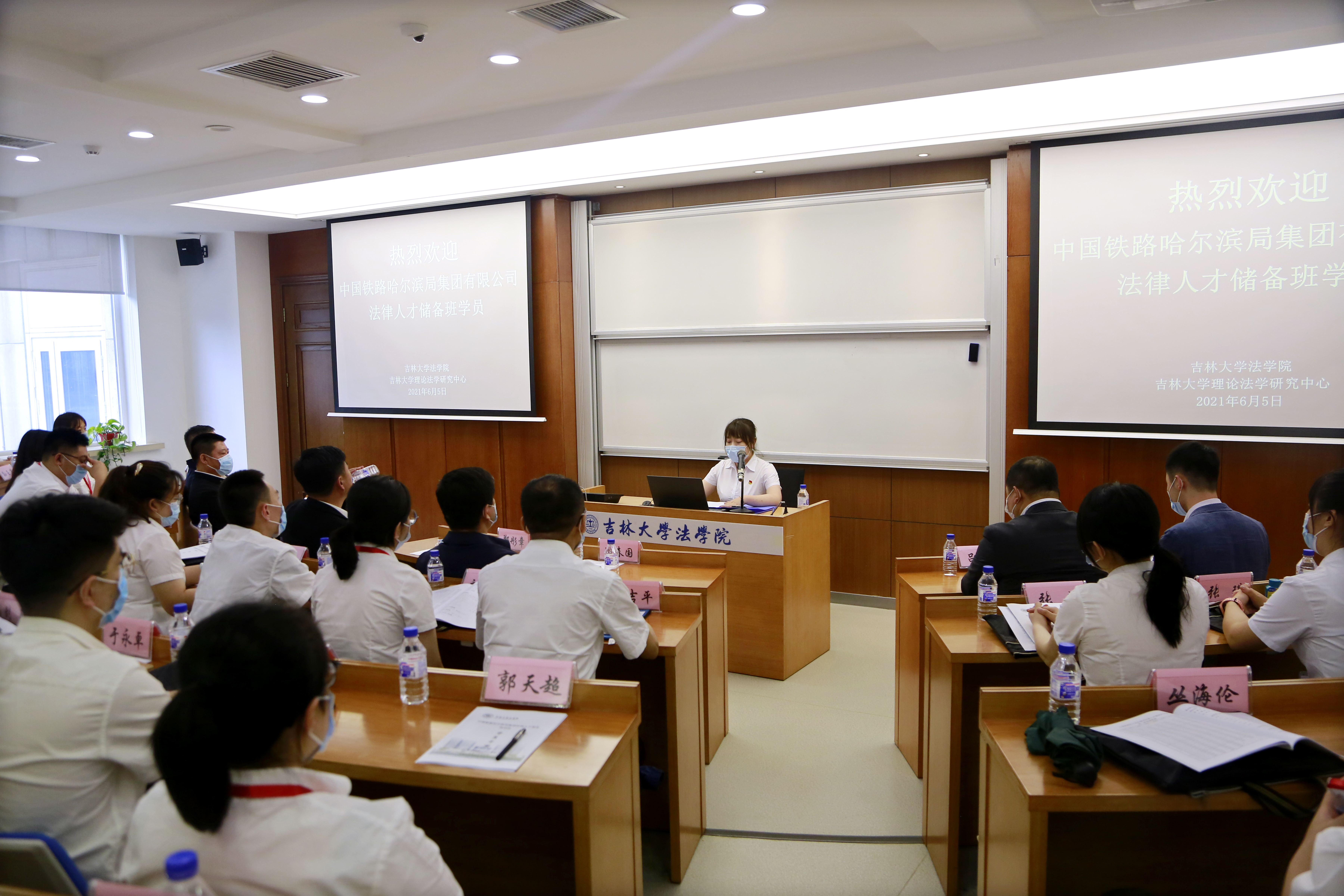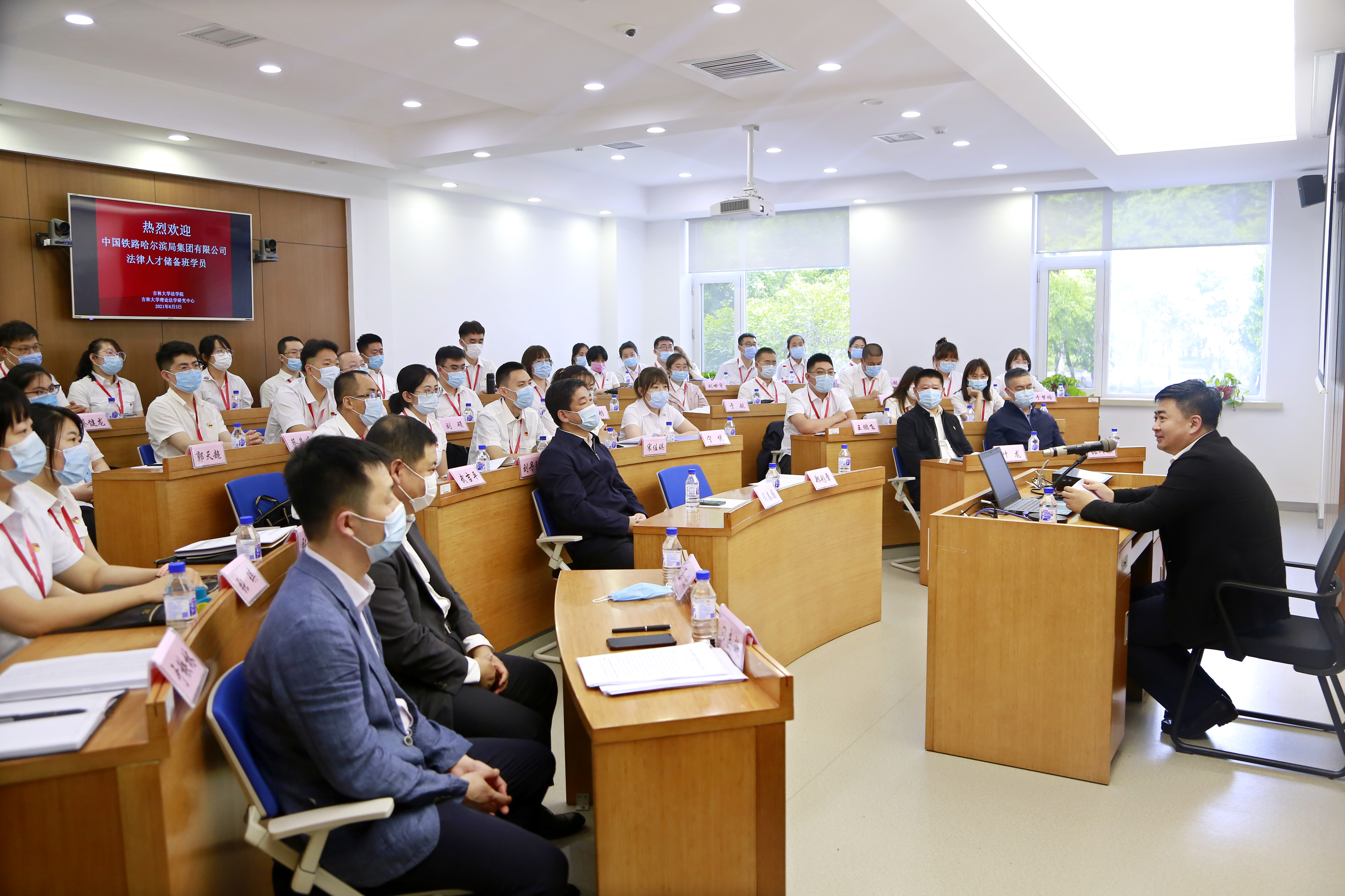 2021年6月5日下午,中国铁路哈尔滨局集团有限公司法律专业储备人才培训班第二期开班仪式在英国正版365官方网站东荣大厦B区119教室举行。中国铁路哈尔滨局集团有限公司人事部(党委组织部)郑彤章部长、叶龙副部长、干部培训科张树根科长、干部培训科刁志超同志,英国正版365官方网站法公司党委书记周春国老师、副经理吕欣老师出席,来自中国铁路哈尔滨局集团公司各单位共50名培训学员参加了开班仪式。