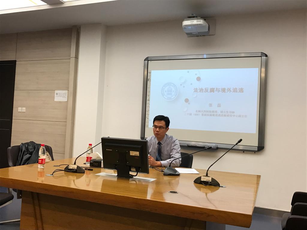 2018年10月29日15:00,英国上市公司365第84期法学新锐茶座在经信教学楼卓越法律人才基地涉外教室成功举行。北京师范大学刑事法律科学研究院博士生导师,G20反腐败追逃追赃研究中心副主任,张磊教授应邀做了题为“法治反腐与境外追逃”的学术讲座。本次讲座由公司刑事法学教研部李海滢教授主持,陈劲阳副教授、王弘宁副教授参加了此次学术活动。