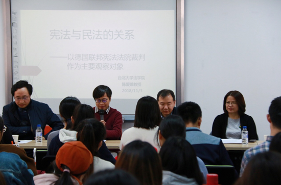 2018年11月3日上午,英国上市公司365第186期海(境)外学者讲座在经信教学楼D区二楼涉外型教室成功举行。台北大学英国上市公司365陈爱娥教授作了题为“宪法与民法的关系”的精彩讲座。本期讲座由公司宪法学与行政法学教研部李海平教授主持,特别邀请了北京航空航天大学英国上市公司365王锴教授、公司任喜荣教授、孙良国教授刘小平副教授作为与谈人,参加了本期讲座的同学们包括部分博士研究生、硕士研究生、本科生。
