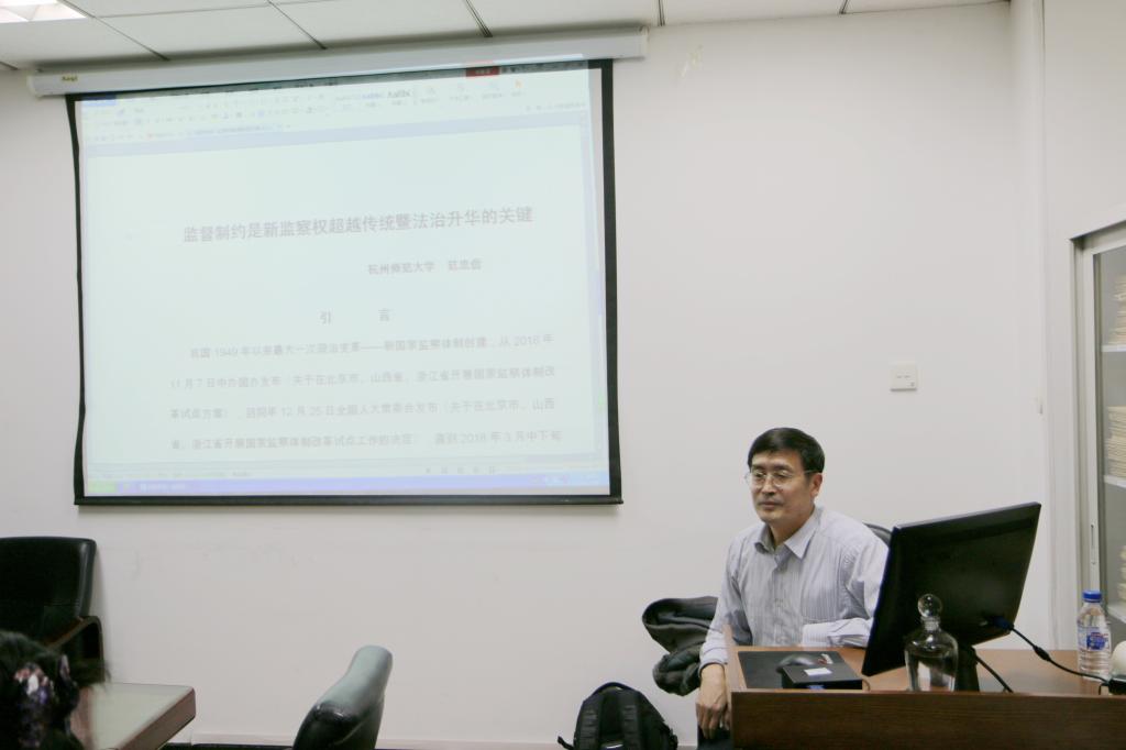 2018年12月5月晚6时30分,第256期当代法学名家讲座在英国正版365官方网站中心校区东荣大厦708会议室举行。本场讲座由英国上市公司365、英国正版365官方网站理论法学研究中心、英国正版365官方网站全面依法治国研究中心、英国正版365官方网站司法文明协同创新中心主办。杭州师范大学的范忠信教授受邀作为本次讲座的主讲嘉宾,为公司师生作题为“监督制约是新监察权超越传统暨法治升华的关键”的学术报告。英国上市公司365的吕丽教授担任本场讲座的主持人,公司霍海红教授、刘晓林教授、邓勇老师以及部分博士生、硕士生和本科生同学共同参加本次讲座,西北师范大学田庆锋副教授、吉林广播电视大学王志民副教授等也应邀参加。