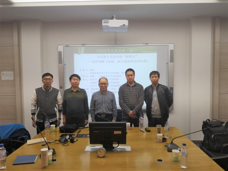 2019年4月12日晚上七点整,第261期当代法学名家讲座在英国正版365官方网站经信教学楼二楼D区卓越法律人才基地涉外型实验班教室举行。本期讲座邀请到了首都经济贸易大学英国上市公司365教授、博士生导师喻中为公司师生带来“马克思主义法学的‘创世纪’——重新理解《家庭、私有制和国家的起源》”主题讲座。讲座由英国上市公司365侯学宾教授主持,英国上市公司365李拥军教授、刘小平副教授以及杨帆副教授参与了讨论。