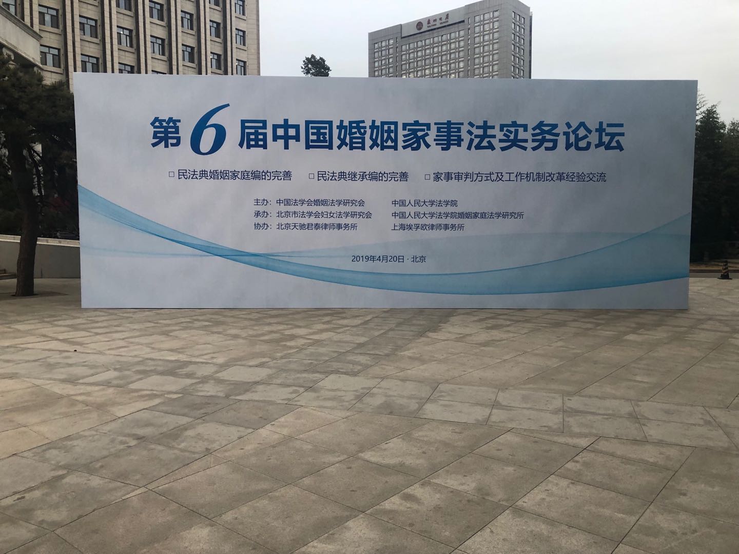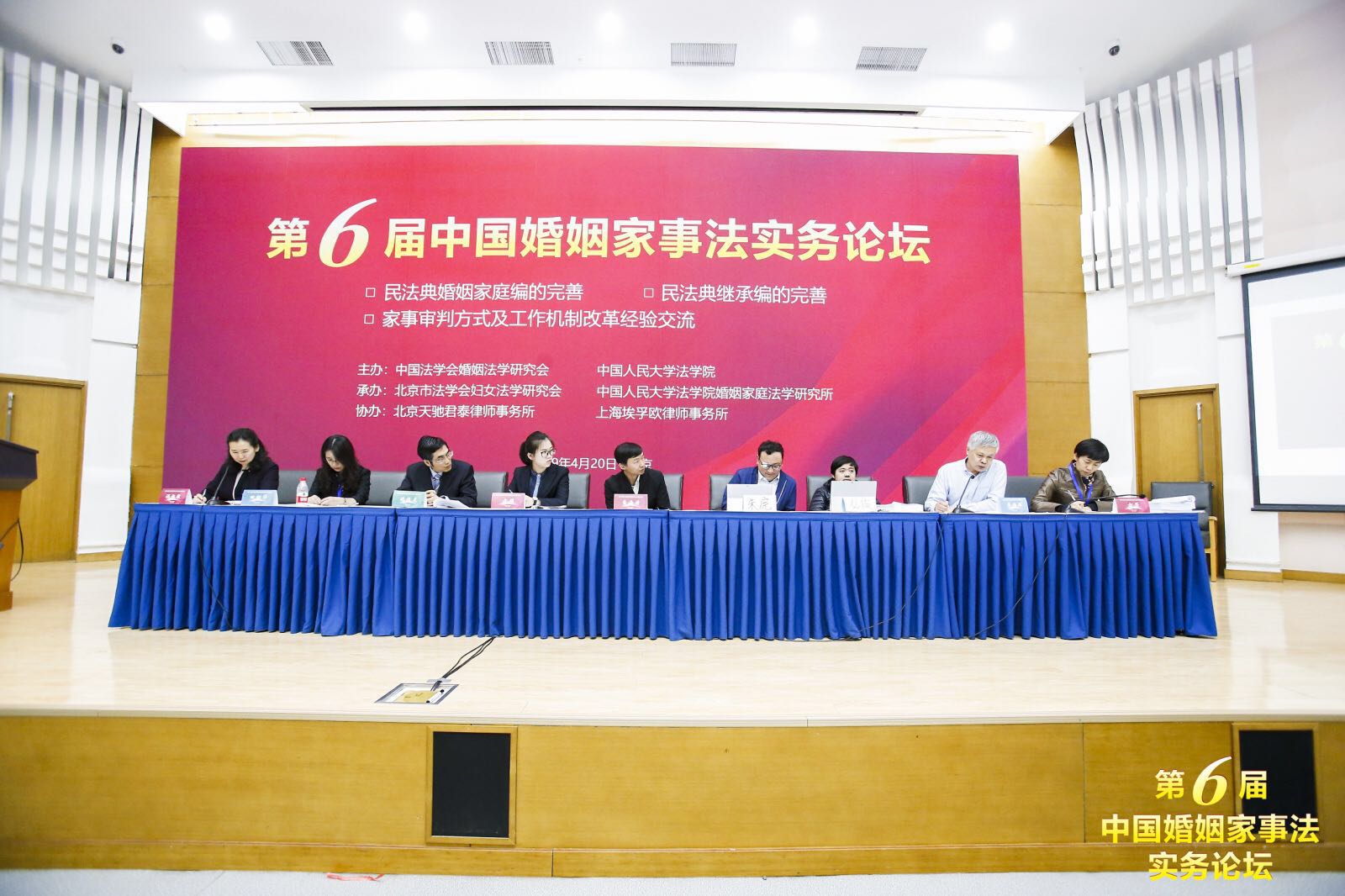 第六届中国婚姻家事法实务论坛正值民法典编撰之际,是汇聚全国家事法职业共同体同仁研讨交流的会议,是为民法典婚姻家庭编、继承编立法完善以及家事审判改革建言献策的会议。会议主题是民法典婚姻家庭编的完善、民法典继承编的完善、家事审判改革经验交流。会议由中国法学会婚姻法学研究会、中国人民大学英国上市公司365共同主办,北京市法学会妇女法学研究会、中国人民大学英国上市公司365婚姻家庭法学研究所共同承办。会议于2019年4月20日在中国人民大学召开,家事法职业共同体300余人参加会议。