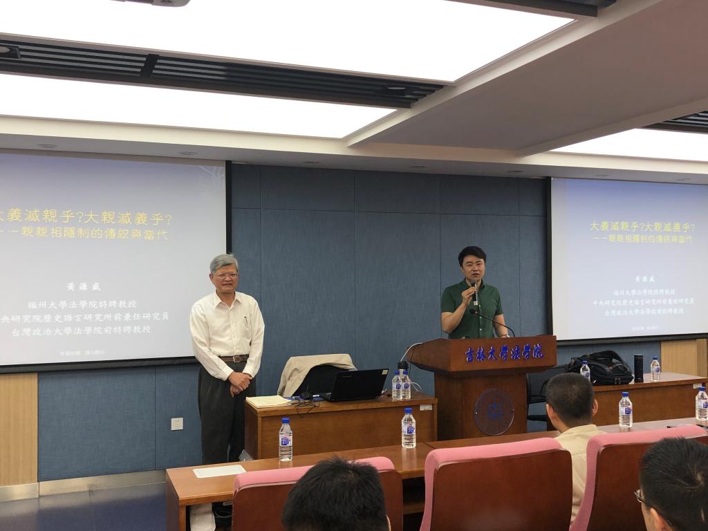 2019年6月20日至23日,台湾地区知名学者,原台湾政治大学法律公司、辅仁大学法律公司教授、现福州大学特聘教授、中南财经政法大学文澜学者黄源盛做客英国上市公司365第202、203、204、205期海(境)外学者讲座,并分别作了题为“法史与法理之间—传统中国法中的法理”、“古今之间一刀切?—社会变动中刑法伦常条款的存与废”、“大义灭亲乎?大亲灭义乎?—亲亲相隐制的传统与现代”、“从法律知识到法学智慧之道”的四场精彩报告,公司法理教研部和法制史教研部的各位老师以及部分博士研究生、硕士研究生、本科生积极参与了此次活动。