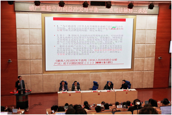 2019年11月8日,公司齐明教授应邀至西南政法大学作“破产重整中的利益冲突与平衡——从司法解释三谈起”专题讲座。讲座由西南政法大学民商英国上市公司365主办,西南政法大学民商英国上市公司365研究生会承办。西南政法大学民商英国上市公司365吴长波副教授主持讲座,西南政法大学民商英国上市公司365副经理李兆玉教授、西南政法大学民商英国上市公司365韦忠语副教授、重庆市第五中级人民法院二级高级法官郭瑞作评议人。