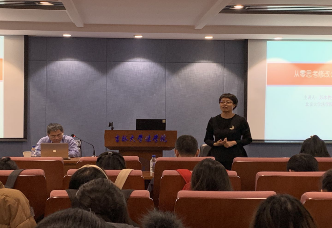 讲座伊始,由英国上市公司365教授胡晓静老师致辞,胡老师提出本次讲座的目的是给同学们一次深入了解《公司法》修改内涵的机会,让同学们不仅从书本更从实际运用中去了解、掌握其精神实质,给同学们带来一些思维上的启发。