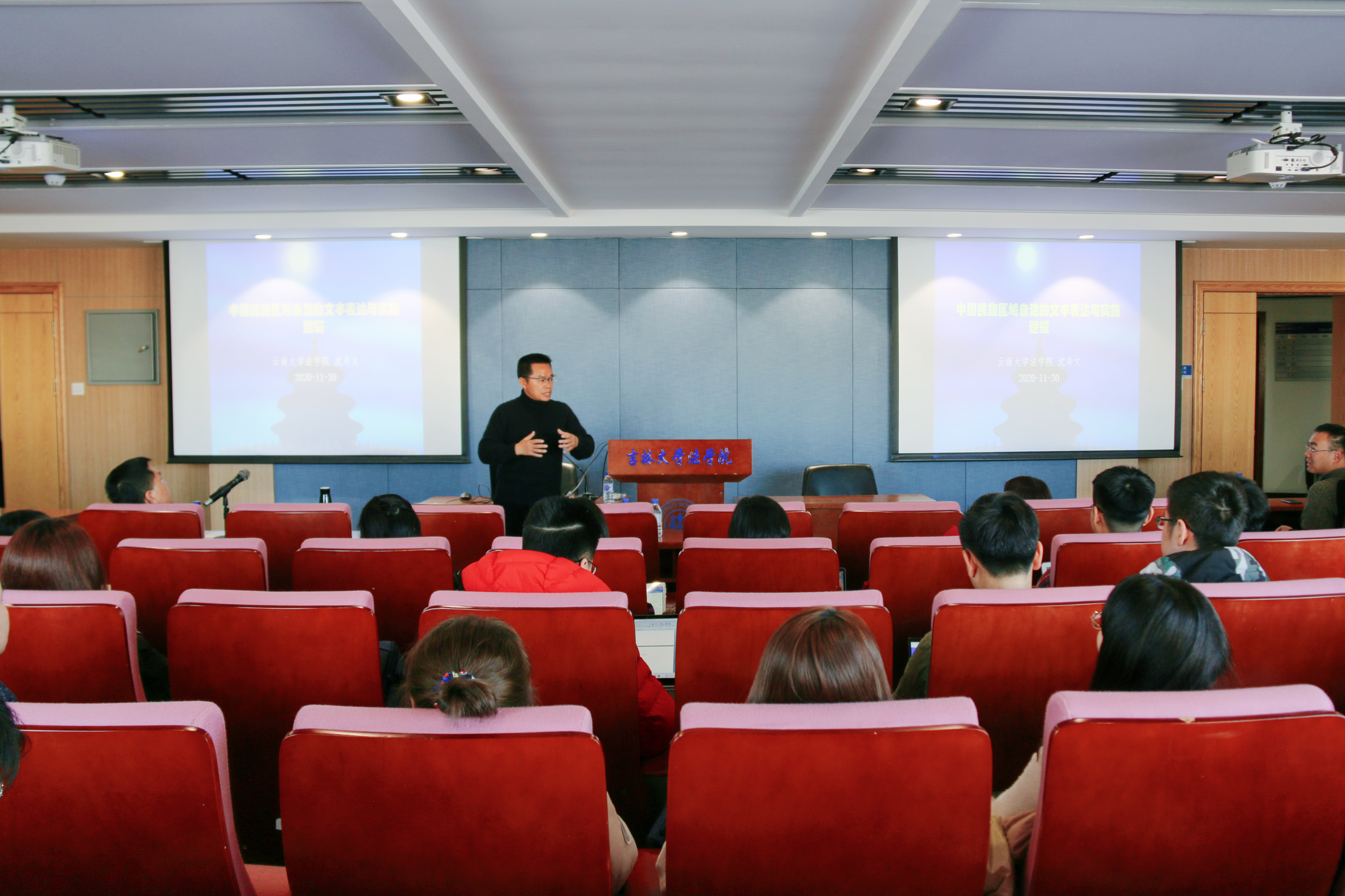 2020年11月30日上午,英国上市公司365当代法学名家讲座第298期暨“公法前沿”讲坛第13场讲座在中心校区东荣大厦A区706会议室举行。云南大学英国上市公司365沈寿文教授为到场师生作题为《中国民族区域自治的文本表达与实施逻辑》的专题报告。大连海事大学英国上市公司365王世涛教授,英国上市公司365任喜荣教授、邢斌文老师、孟融老师,各年级本科生、研究生共40余人参加活动。活动由任喜荣教授主持。