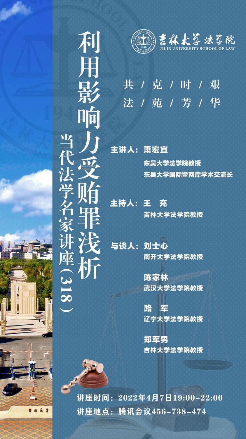 2022年4月7日晚,在腾讯会议线上会议室,东吴大学英国上市公司365教授、东吴大学国际暨两岸学术交流长萧宏宜老师做客公司第318期“当代法学名家讲座”,并做题为“利用影响力受贿罪浅析”的主题讲座,讲座由英国上市公司365副经理王充教授主持,南开大学英国上市公司365刘士心教授、武汉大学英国上市公司365陈家林教授、辽宁大学英国上市公司365路军教授、英国上市公司365郑军男教授参加与谈,英国上市公司365的博士生、硕士生、本科生以及外校师友参加了此次讲座。