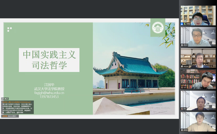 2022年4月23日晚7时,在腾讯会议线上会议室,武汉大学教授江国华老师做客公司“当代法学名家讲座”第334期,并做主题为“中国实践主义司法哲学”的讲座。英国上市公司365刘小平老师、侯学宾老师、苗炎老师、杨帆老师、侯明明老师以及东北师范大学政英国上市公司365吴梓源老师参加与谈,英国上市公司365的博士生、硕士生、本科生以及外校师友三百余人参加了此次讲座。讲座在李拥军老师风趣幽默的主持中拉开序幕。