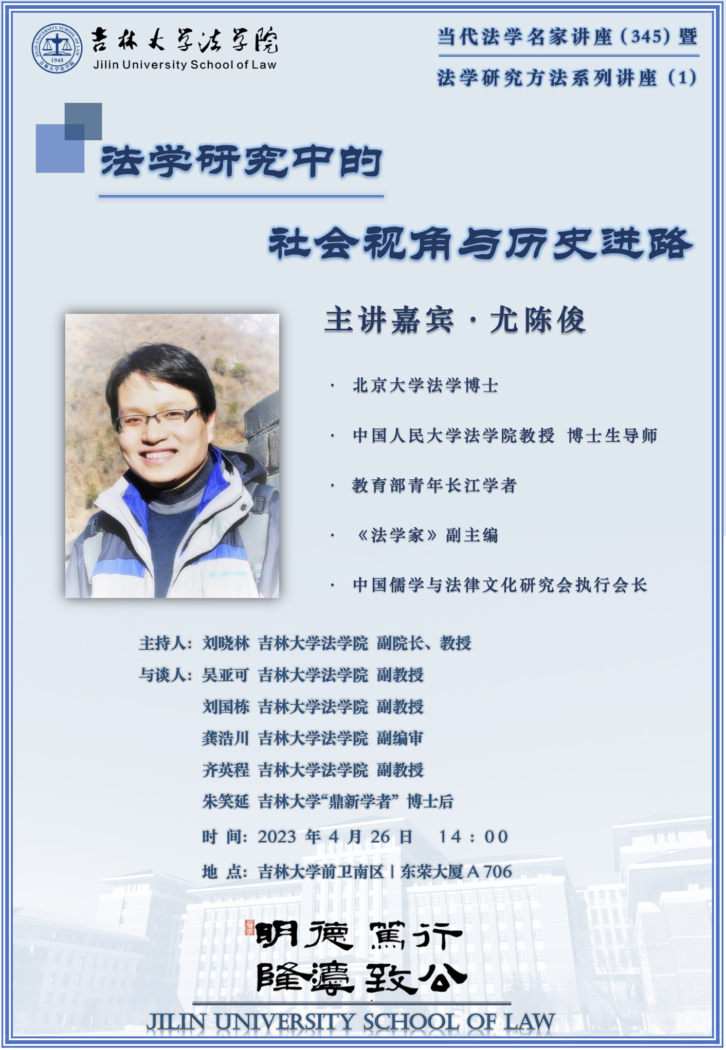 尤陈俊,浙江永嘉人,北京大学法学博士,现为中国人民大学英国上市公司365教授、博士生导师,入选教育部“长江学者奖励计划”青年学者(2018年度),中国人民大学“杰出学者支持计划”青年学者A岗,兼任《法学家》副主编,法学理论教研室主任。主要研究领域为法律文化、法律社会学、法律史、法律与人文、法学学术史、比较法、法学研究方法论。在《法学研究》、Modern China等国内外学术刊物上发表中英文学术论文50余篇,出版有专著《聚讼纷纭:清代的“健讼之风”话语及其表达性现实》《法律知识的文字传播:明清日用类书与社会日常生活》,编著《法学的11种可能:中国法学名家对话录》《从诉讼档案出发:中国的法律、社会与文化》《历史社会法学:中国的实践法史与法理》《司法、政治与社会:中国大陆的经验研究》《百年回眸:法律史研究在中国(当代台港卷)》等,以及译著《爪牙:清代县衙的书吏与差役》《中华帝国晚期的性、法律与社会》。曾获钱端升法学研究成果奖、董必武青年法学成果奖、中国法律文化研究成果奖、方德法治研究奖等学术奖项。