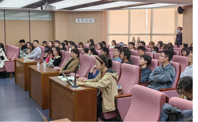 王老师从研究设计、研究方法、研究工具三个方面就学术论文撰写的思路和方法展开讲授。在学术论文的研究设计方面,王老师首先强调,论文选题的重要性应从三个角度思考。第一,选题内容是否契合国家的战略需求。第二,选题内容是否扎根时代经济发展中的现实问题。第三,选题内容是否属于本学科研究发展的前沿问题。其次,王老师进一步阐释了国家发展战略的各个面向,并结合自然科学基金对科学问题属性的分类以及学术研究的实例,为同学讲解了科学问题的提出路径,分析了研究设计的步骤和过程。王老师鼓励同学们采用技术路线图的方式厘清行文思路,并为大家展示优秀论文的清晰逻辑脉络。在学术论文的研究方法方面,王老师介绍了文献综述的方法及工具,强调文献综述对于开展学术研究的重要性,也提醒大家及时关注生成式人工智能等对梳理文献等基础分析工作的帮助。而后,王老师介绍了“扎根研究方法”“回归分析方法”“结构方程方法”等,可以将这些管理学研究方法应用于法学研究和论文写作。在学术论文的研究工具方面,王老师深入浅出地讲解了如何应用CiteSpace、SPSS、AMOS等工具进行因果关系或相关关系分析,为同学们开展法学学术研究提供了具体的管理学工具。