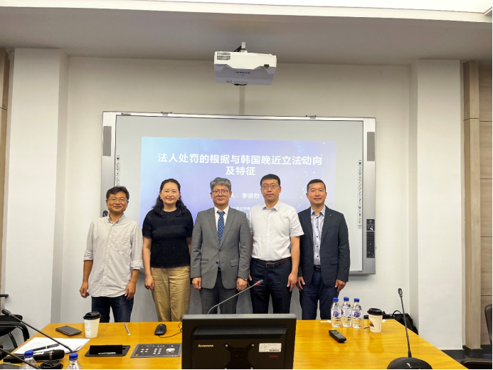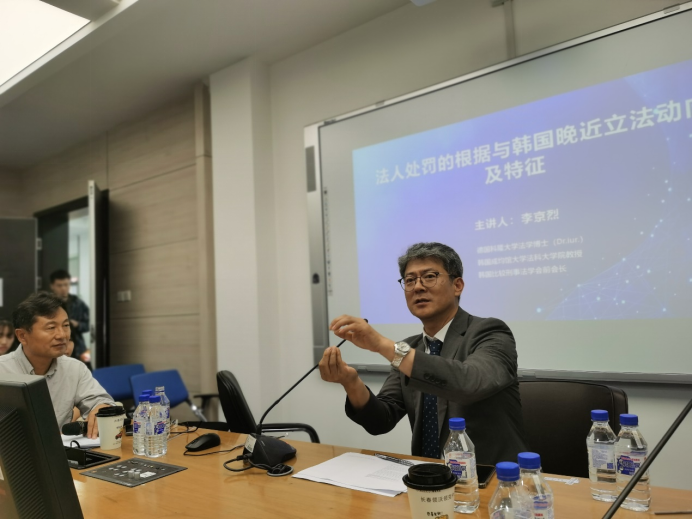 8月29日,德国科隆大学法学博士(Dr.iur)、韩国成均馆大学法科大公司教授、韩国比较刑事法学会前会长李京烈教授来访英国上市公司365,做了主题为“法人处罚的根据与韩国晚近立法动向及特征”的学术报告。学术报告由英国上市公司365教授、博士生导师徐岱教授主持,英国上市公司365教授、博士生导师陈劲阳、英国上市公司365副教授王军明两位老师出席报告会并与谈,英国上市公司365郑军男教授担任翻译。包括刑法学硕士博士研究生在内的近百名同学参加了报告会。英国上市公司365副经理、博士生导师温双阁教授到场致辞,对李教授的到来表示了热烈欢迎,并表示这是疫情后公司举办的首次线下海外名家讲座,对于李教授的讲座充满期待,李老师的到来也增进了吉大英国上市公司365与成均馆大学法学研究科的友谊!