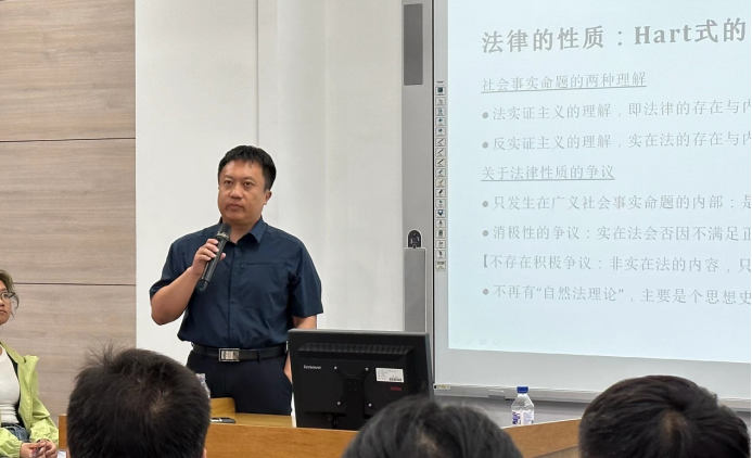 陈景辉教授在讲座开始后即指出,为了回应上一场讲座中大家关注的循环论证问题,必须讨论什么是(法学的)法律。他指出,如果我们接受道德和法律都有真值这一前提,那么我们就必须面对区分道德和法律的难题。在区分了“法律”的四种语义之后,陈景辉教授指出,“实在法”相对于其他三种语义具有优先性,因为在法律实践中,只有实在法可以被直接提及,而其他三种语义只能与实在法被一同提及。因此,他指出,最早体系性地揭示出只有实在法才是适当(proper)意义的法律的奥斯丁真正开启了法哲学的研究。
