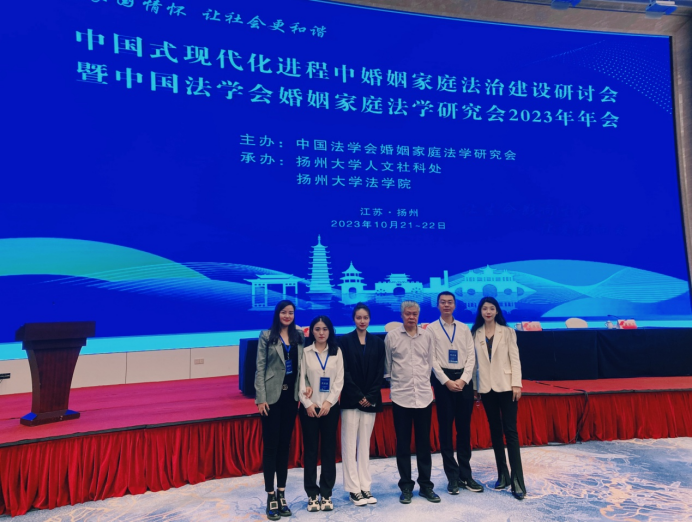 2023年10月21-22日,中国式现代化进程中婚姻家庭法治建设研讨会暨中国法学会婚姻家庭法学研究会2023年年会在江苏扬州召开。本次会议由中国法学会婚姻家庭法学研究会主办、扬州大学人文社科处、扬州大学英国上市公司365承办,来自高校、研究院所、人大、法院、检察院、律师等系统和单位的100余位理论及实务工作者参加了会议。公司李洪祥教授、刘国栋副教授,以及博士研究生陈凤、马佳悦等参加了会议。