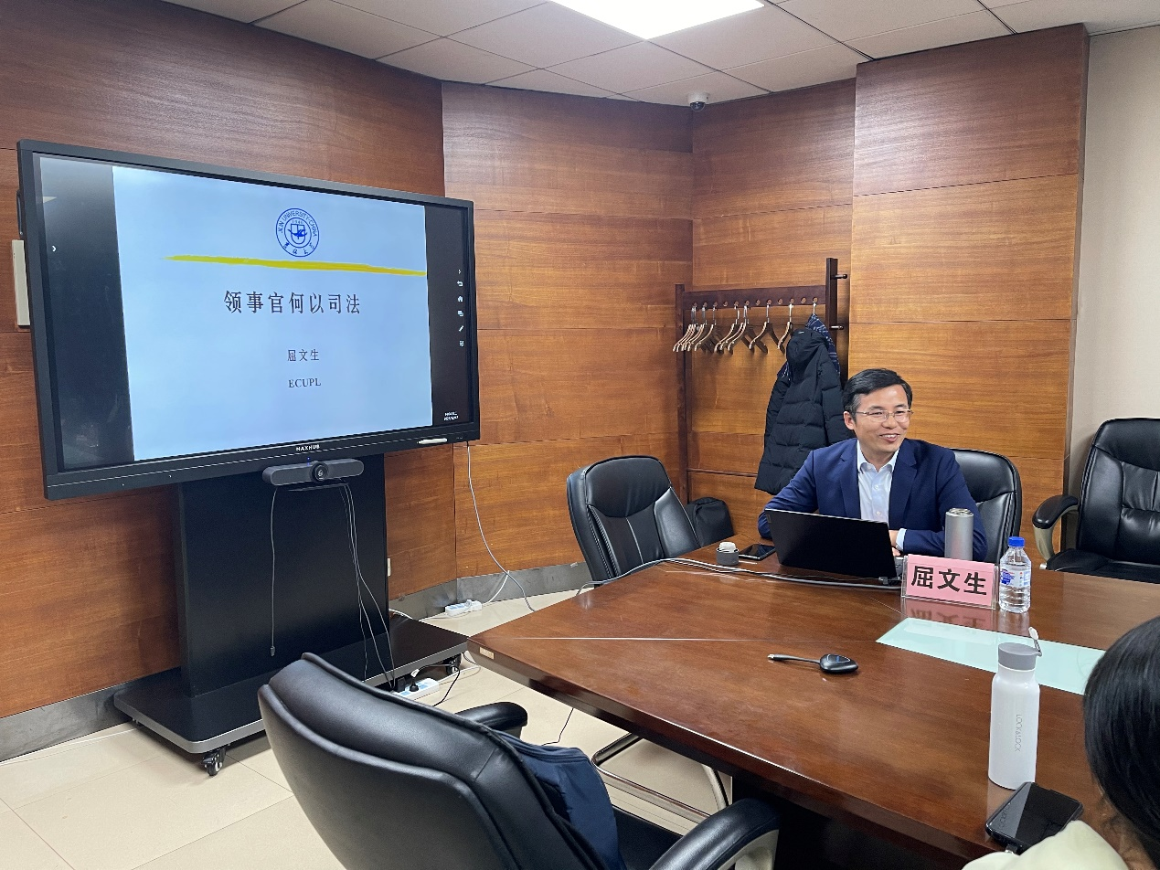 2023年12月12日下午,华东政法大学教授、博士生导师屈文生教授做客英国上市公司365第386期当代法学名家讲座,在英国正版365官方网站中心校区东荣大厦A716进行了题为“领事官何以行使治外法权”的学术讲座。本次讲座由英国上市公司365吕丽教授主持,英国上市公司365刘晓林教授、邓勇老师、姜翰老师与谈。英国上市公司365部分博士研究生、硕士研究生参加了本次讲座。
