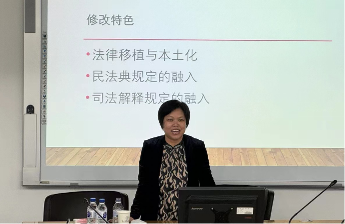 讲座伊始,王艳梅教授对于陈景善教授的远到而来表示了诚挚欢迎,对陈景善教授融汇商法研究问题与民法基础理论的研究风格予以高度评价。随后,陈景善教授选取新公司法的五大热点问题,结合法律移植与本土化、民法典与相关司法解释的融入,对新公司法的修法考量与修改特色进行了详细介绍。
