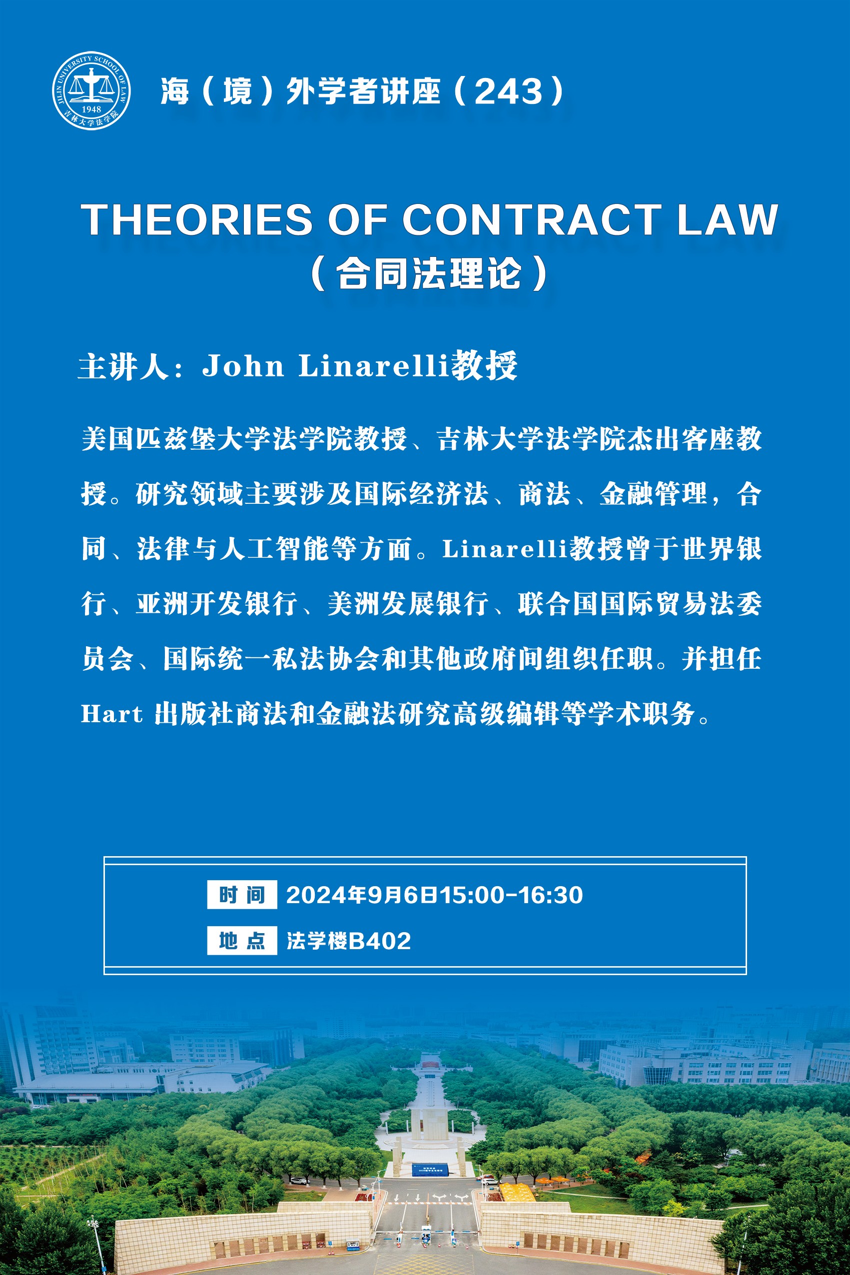 请想要参加讲座的同学将报名表于9月5日13:00前发送至lawglobal@jlu.edu.cn