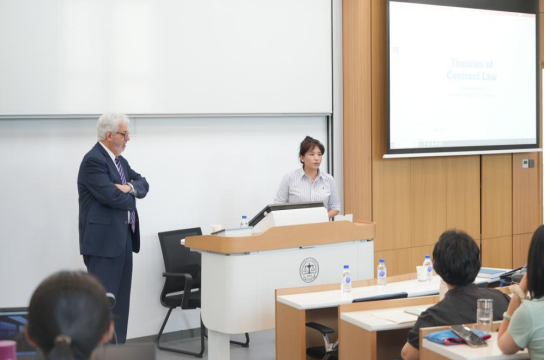 讲座伊始,John Linarelli教授从合同成立、合同履行、合同的违约救济三方面介绍了美国合同法的基本理论框架。围绕合同成立的问题,John Linarelli教授就如何处理电子合同、合同是关乎交换还是信赖,以及在何种情况下书面形式被作为合同成立的要件等问题进行讲解。此外,John Linarelli教授还结合案例,具体讲解了影响合同成立的因素,包括意思表示错误、胁迫、公共政策等。在合同履行和违约救济问题上,John Linarelli教授讲解了合同履行的条件、合同违约、诚信及相关原则的适用,合同风险承担等问题,并介绍了合同违约时涉及到的几种救济类型。