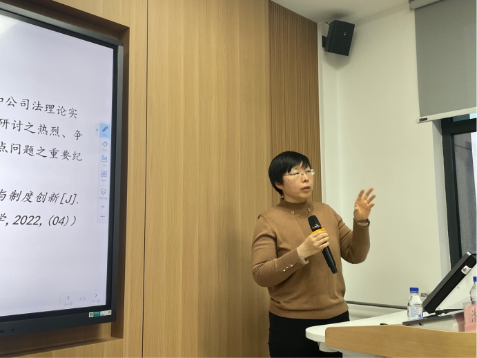 陈洪副教授从公司法制度与商事交易实践间的关系层面对讲座内容进行了梳理,进一步指出对赌协议实则是行为法与组织法的交叉问题。胡晓静教授亦点评对赌协议实属民法与商法的交叉研究领域,肯定对赌协议的履行判断主体应回归董事会,但提出董事的独立性问题应当结合中国公司的现实背景进行探讨。在讲座最后,三位同学针对本次讲座的内容与自身的研究问题与潘林教授进行了交至此,讲座圆满结束。