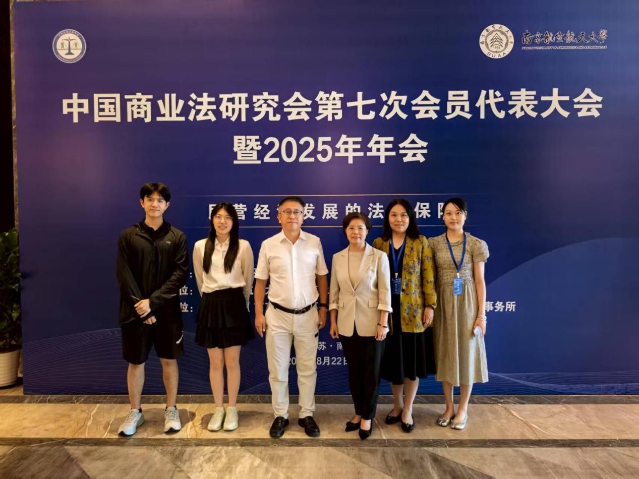 2025年8月22日—24日,公司于莹教授、傅穹教授、王艳梅教授、胡晓静教授,以及四位博士研究生徐艺瑄、吴雨泽、孙永敏、于欣鹭,一位硕士研究生刘佳源,前往江苏省南京市参加中国商业法研究会第七次会员代表大会暨2025年年会,共同参与、探讨关于“民营经济发展的法治保障”主题的最新理论与实务问题。本次论坛由中国商业法研究会主办,南京航空航天大学人文与社会科学公司承办。来自立法机关、审判机关、检察机关、群团组织、律师事务所等单位和高校科研院所的300余名代表参加了本次年会。