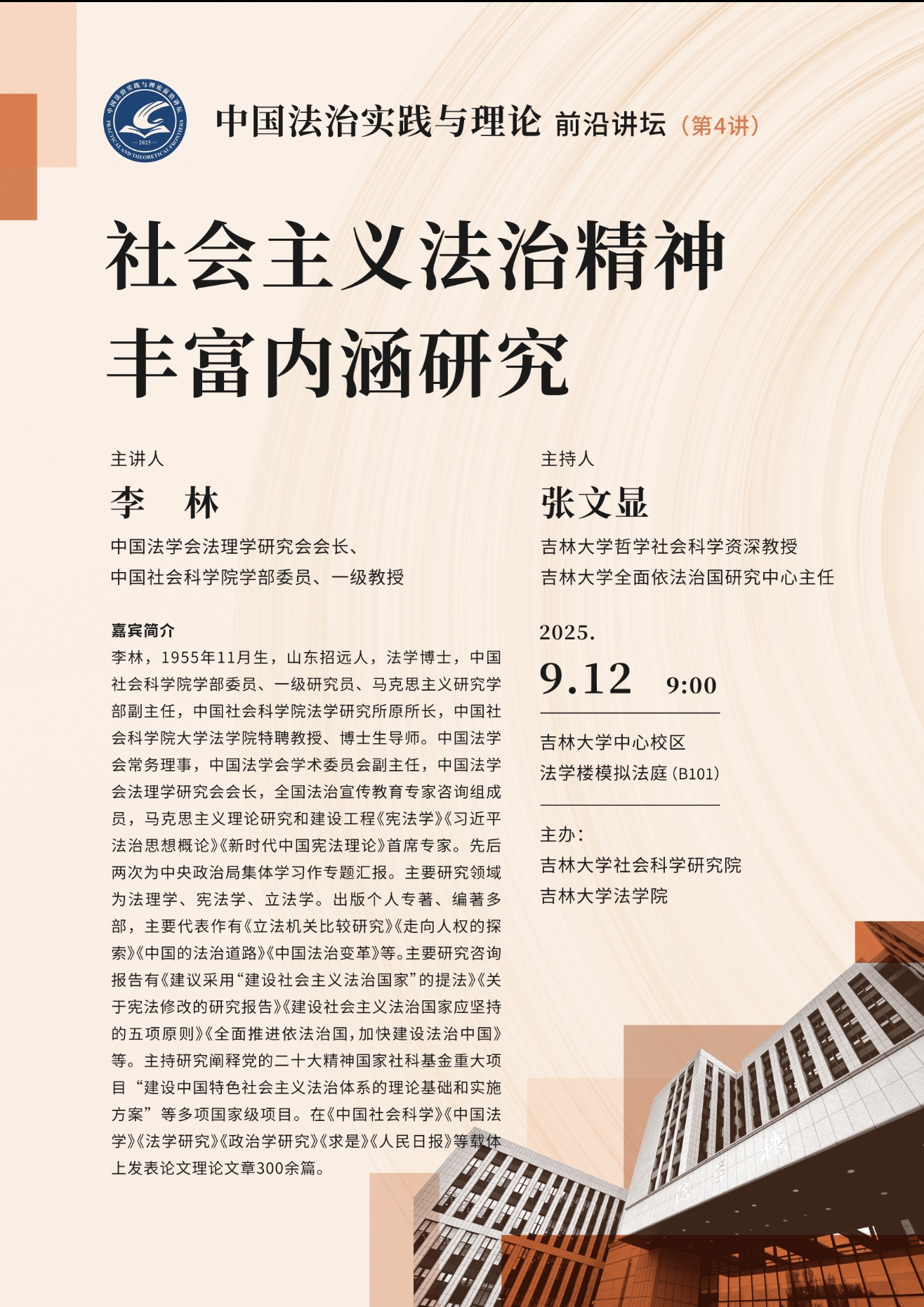 上一篇:东南大学英国上市公司365刘启川教授做客吉大法学学术茶座第153期暨“公法前沿”讲坛第35场 下一篇:重磅预告 | 中国特色社会主义数字司法制度的价值取向与建设路径