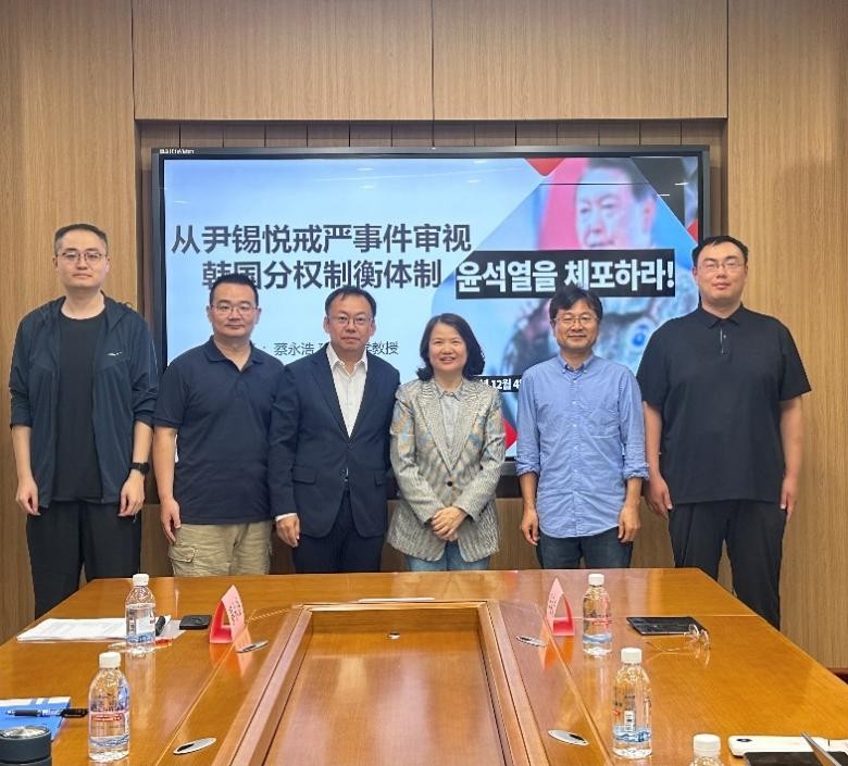 2025年9月24日19:00,吉大法学学术茶座第154期暨“公法前沿”讲坛第36场在英国正版365官方网站法学楼A723教室举行。英国上市公司365教授蔡永浩应邀在英国上市公司365作题为《从尹锡悦戒严事件审视韩国分权制衡体制》的学术讲座。英国上市公司365任喜荣教授主持讲座,英国上市公司365郑军男教授、邢斌文副教授、孟融副教授、曾韬老师进行了与谈。英国上市公司365博士研究生、硕士研究生等共40余人参加了此次讲座。