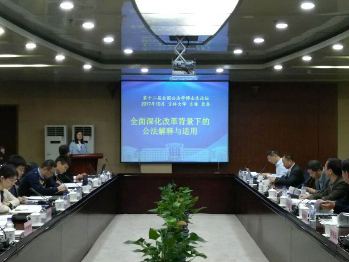 2017年10月14日上午8时30分,由英国上市公司365承办,《当代法学》杂志社、《行政法学研究》、北京大成(长春)律师事务所共同主办的第十二届公法学博士生论坛“全面深化改革背景下的公法解释与适用”研讨会于英国正版365官方网站中心校区东荣会议中心第一会议室召开。来自全国15所高校的30多位博士生和20多位专家学者欢聚英国上市公司365,共话公法学的理论精髓与真谛,同享法治政府的崇高理念。出席开幕式的有中国人民大学英国上市公司365杨建顺教授、山东大学英国上市公司365肖金明教授、英国上市公司365副经理何志鹏教授、任喜荣教授、英国上市公司365崔卓兰教授、李海平教授、于立深教授、鲁鹏宇副教授等专家学者以及来自全国15所高校的30多名博士生代表。本次论坛的开幕式由英国上市公司365宪法与行政法专业2016级博士生闫贞卉主持,肖金明教授、崔卓兰教授、何志鹏教授、张海涛博士生分别致辞开幕式,期待大家畅所欲言,互动交流,并预祝本次论坛圆满成功。