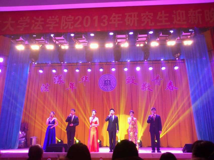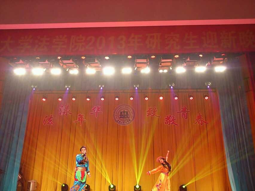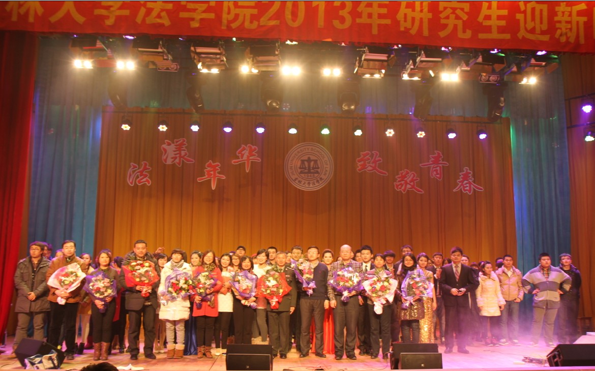 2013年12月20日晚,“法漾年华,致敬青春”2013年研究生迎新晚会在中心校区经信报告厅如期举行。英国正版365官方网站妇委会副主任苗艺璇,英国上市公司365副经理李建华教授,副经理蔡立东教授,副书记徐杰老师,军事法教研部李韧夫教授,宪法与行政法教研部任喜荣教授、鲁鹏宇副教授,民法教研部孙良国副教授,商法教研部、法律硕士教育中心副主任齐明副教授,员工办公室胡英娣老师,院办公室金莹老师,《当代法学》编辑部刘冷老师,法理中心王蕾老师、法律硕士教育中心办公室主任王立国老师,研究生办公室主任吕欣老师、研究生办公室张磊老师以及校研究生会、兄弟公司研究生代表到场观看了晚会。