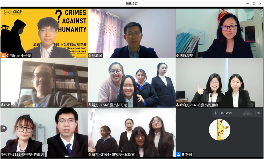 From April 17th to 18th, the main stage of the 2021 ICC was held online. A total of 70 college and university teams participated in the competition and after the selection of paper pleadings, 45 teams entered the main competition. In accordance with the relevant rules of international law, the defendant’s right to appear in court and conduct self-defense, crimes against humanity, and the jurisdiction of the International Criminal Court were investigated as the litigation focuses.