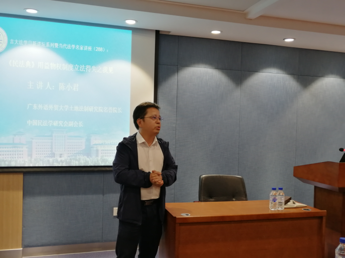 Professor Chen Xiaojun gave a detailed explanation on the usufructuary right in Civil Code. In the first part of the lecture, Professor Chen clarified the characteristics of legislative objectives by analyzing provisions, and pointed out the defects and deficiencies of legislation. The revision of property law in Civil Code reflects the adherence to the statutory principle of real right, and many clauses directly inherit and repeat the existing provisions of current property law. However, there is no specific regulation on the rules of chattel usufructuary right, which also leads to the difficult connection between chattel usufructuary right system with other systems. Secondly, the frequent use of reference clauses increases the ambiguity of legal consequences. Furthermore, some referral clauses directly lead to judicial interpretation. AS a result, legislation can not cover judicial interpretations. Finally, the introduction of the new system has not solved the problems which need to be solved urgently in social life. The Civil Code includes a large number of clauses to stipulate the right of residence, but there are few disputes caused by the right of residence in practice. On the contrary, the problems such as the right to use homesteads have not been solved in the legislation.