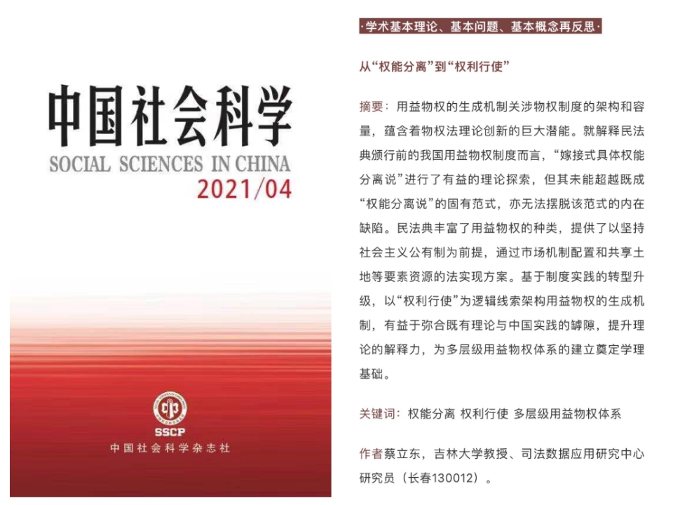 英国上市公司365教授、英国正版365官方网站司法数据应用研究中心研究员蔡立东在《中国社会科学》2021年第四期发表论文《从“权能分离”到“权利行使”》。