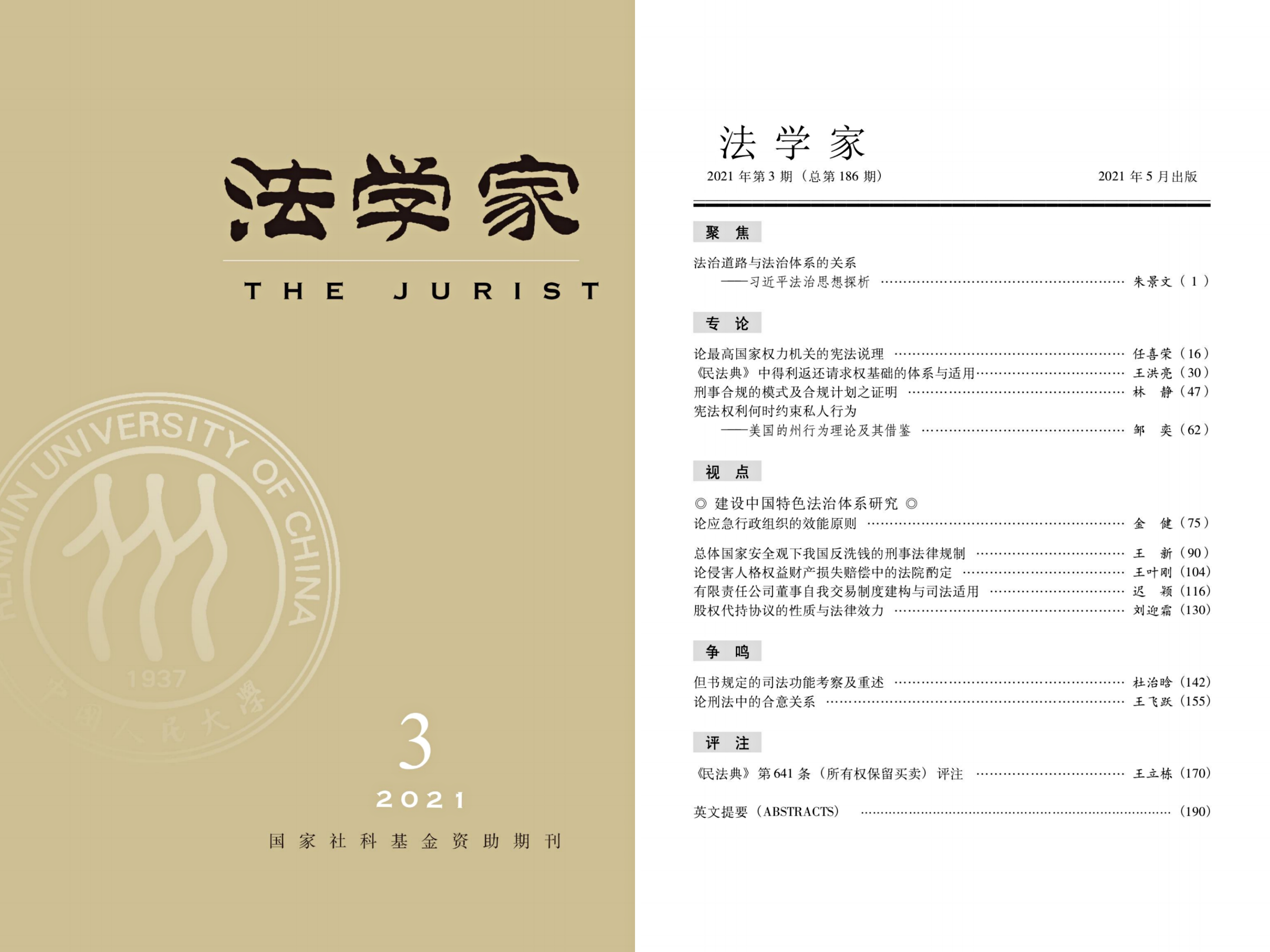 英国上市公司365任喜荣教授在《法学家》2021年第3期(第16-29页)发表论文《论最高国家权力机关的宪法说理》,全文共计2.1万余字。