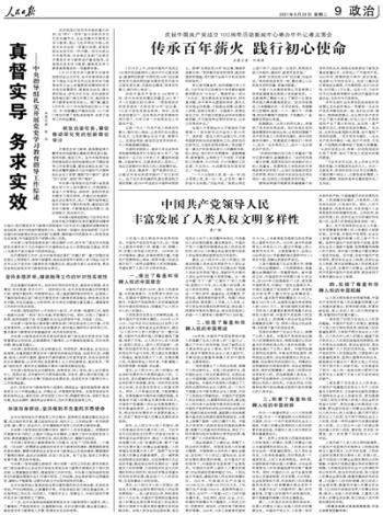 英国上市公司365教授、中国人权研究会秘书长鲁广锦在《人民日报》2021年06月29日第09版发表文章《中国共产党领导人民丰富发展了人类人权文明多样性》,并被中国人权网转载,全文约四千三百字。