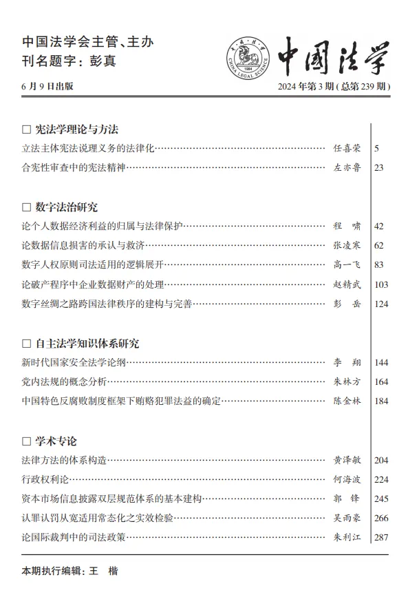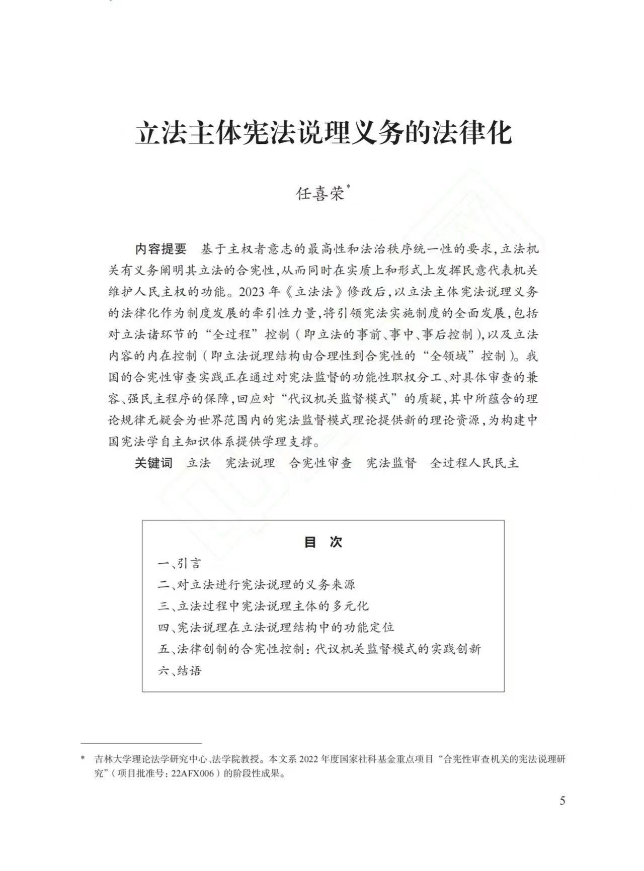 近日,公司英国上市公司365任喜荣教授在《中国法学》2024年第3期发表题为《立法主体宪法说理义务的法律化》的文章。文章以2023年修改的《中华人民共和国立法法》为规范依据,以立法主体宪法说理的义务来源、主体多元、功能定位为研究对象,探讨了我国正在构建的立法的事前、事中与事后的“全过程”合宪性审查机制的实践创新。