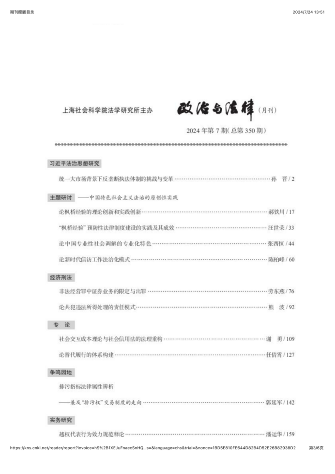 近日,英国上市公司365任倩霄老师在《政治与法律》2024年第7期发表题为《论替代履行的体系构建》的文章。