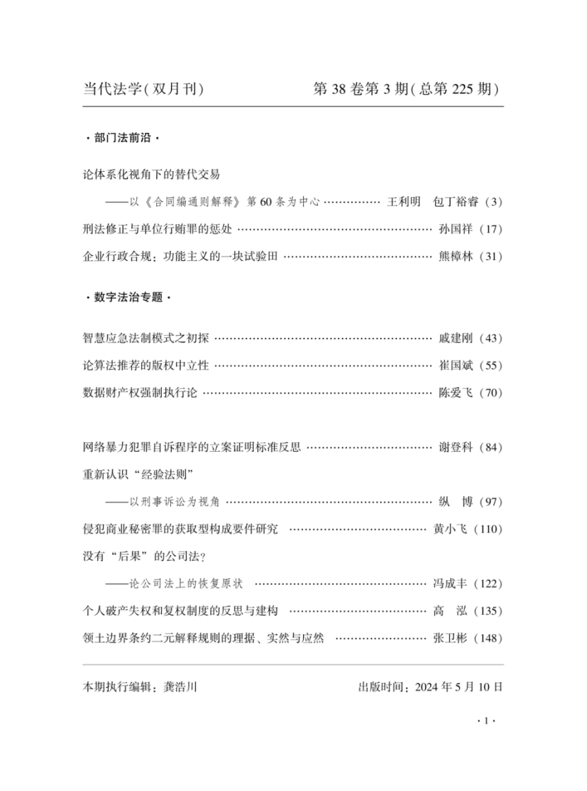 数据财产权强制执行论…………………………………………………陈爱飞(70)